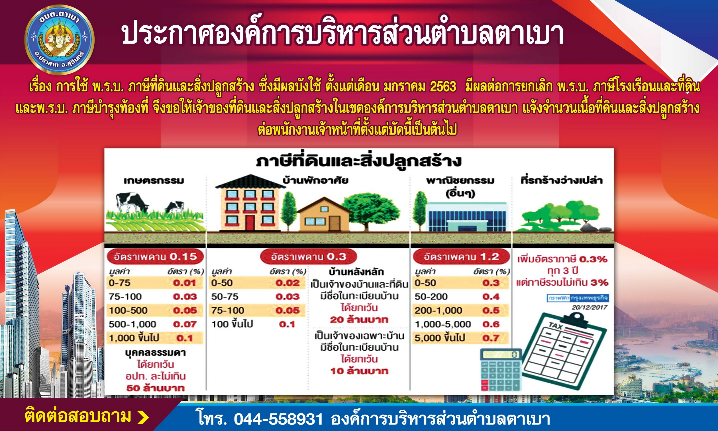ประชาสัมพันธ์การเก็บภาษีประจำปี 2563