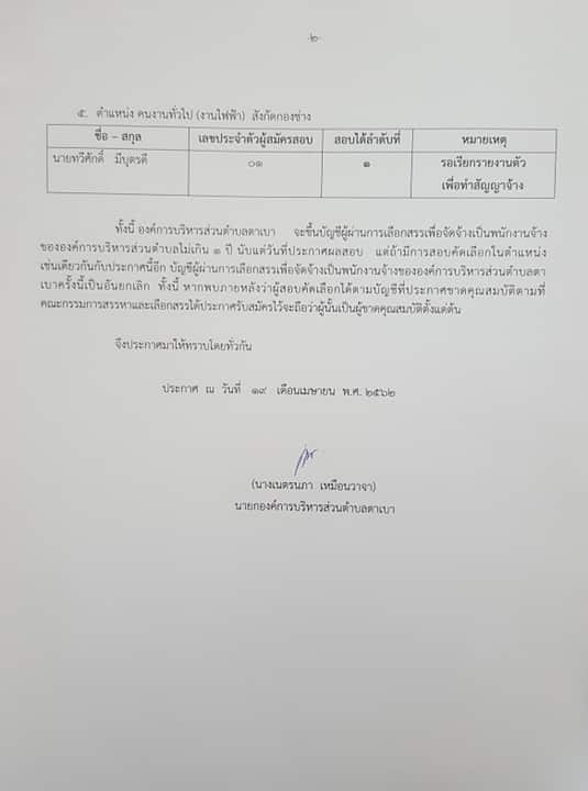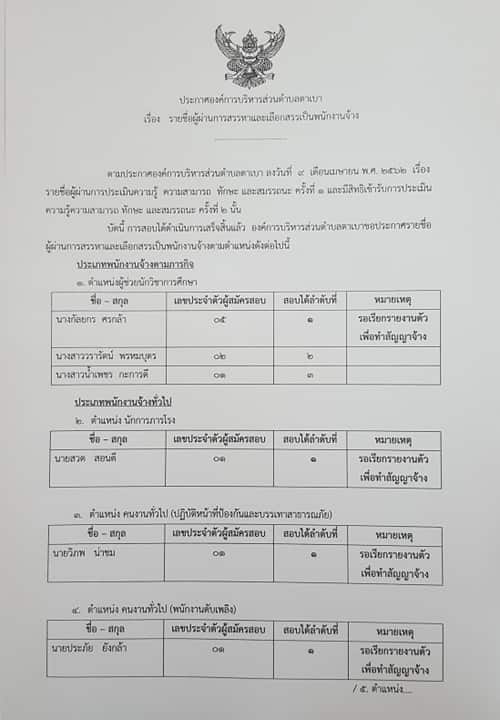 ประกาศรายชื่อผู้ผ่านการสรรหาและเลือกสรรเป็นพนักงานจ้าง