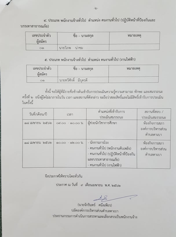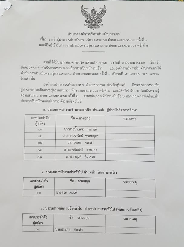 ประกาศรายชื่อผู้ผ่านข้อเขียน และมีสิทธิเข้าสอบสัมภาษณ์